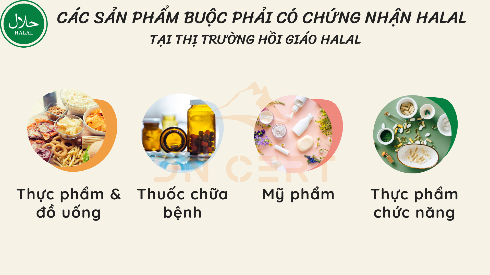 Hiện nay, các sản phẩm buộc phải đạt Chứng nhận Halal tại các thị trường Hồi giáo chia ra 4 loại chính: